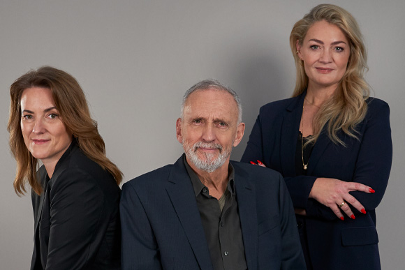 Jussi Adler-Olsen und seine Co-Autorinnen Stine Bolther und Line Holm, Foto: Boris Breuer